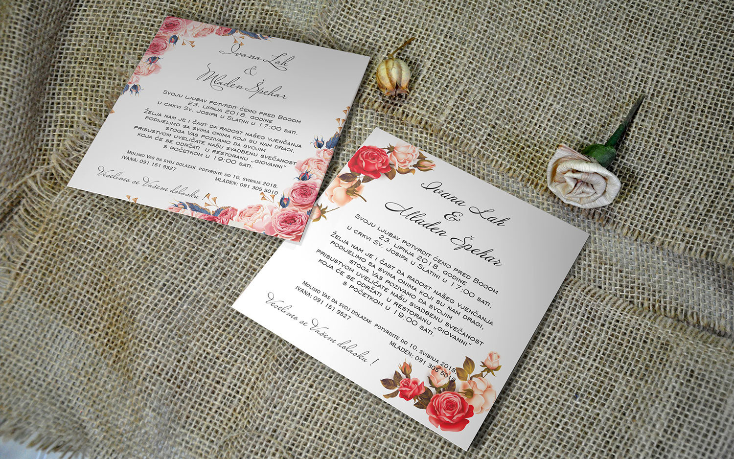 Pozivnica za vjenčanje 14×14 etui ruže 2