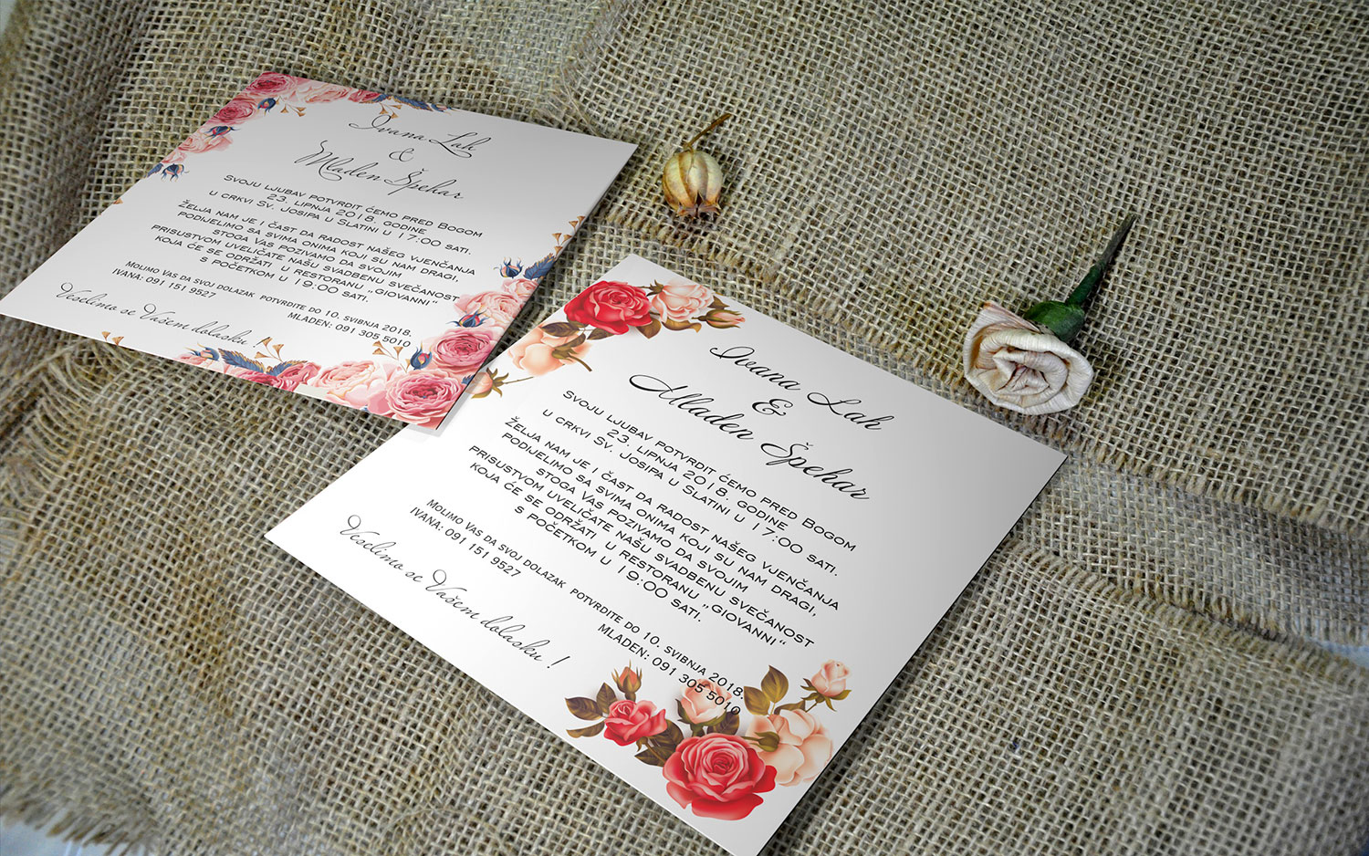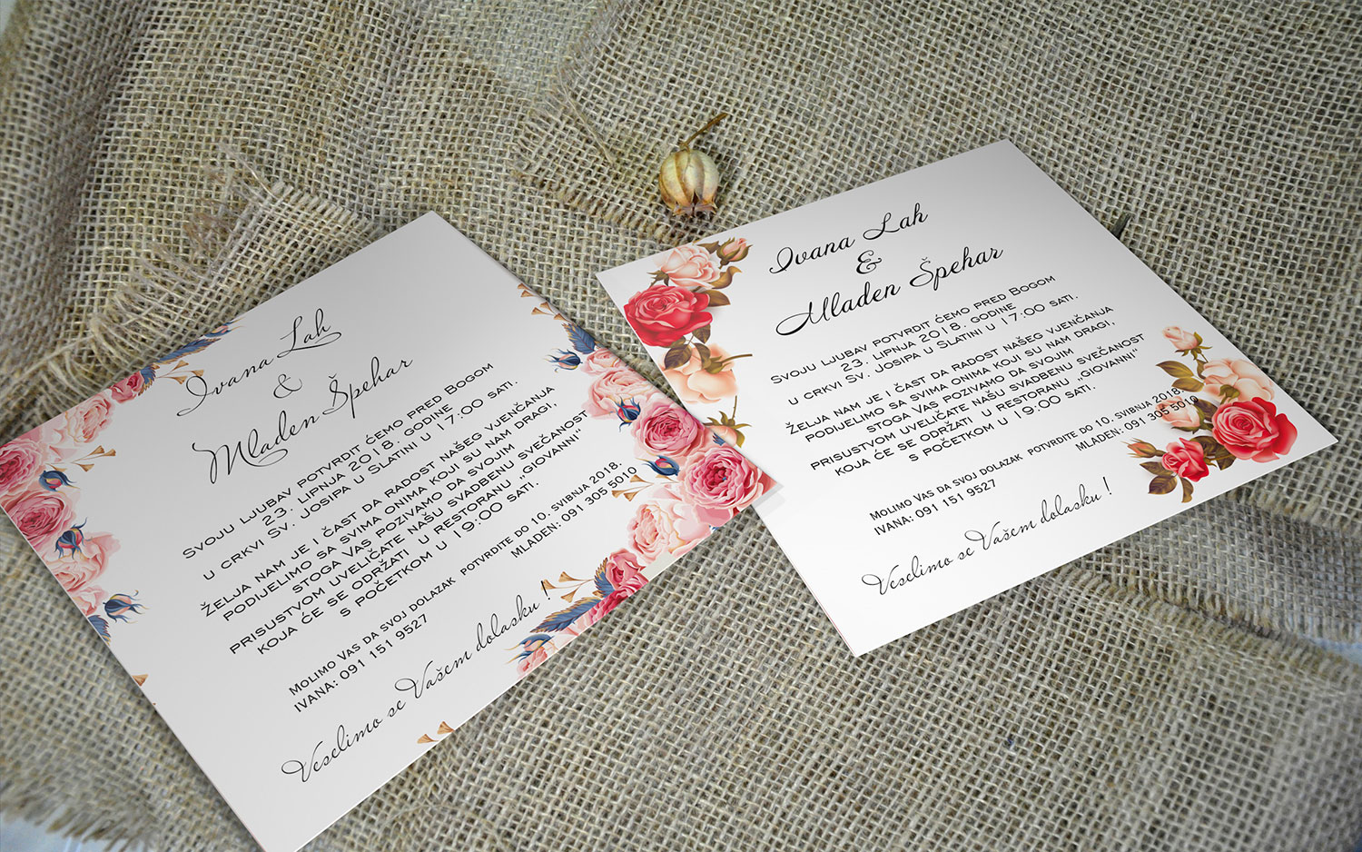 Pozivnica je izrađena kao etui u koji se kartončić sa tekstom umeće sa gornje strane.